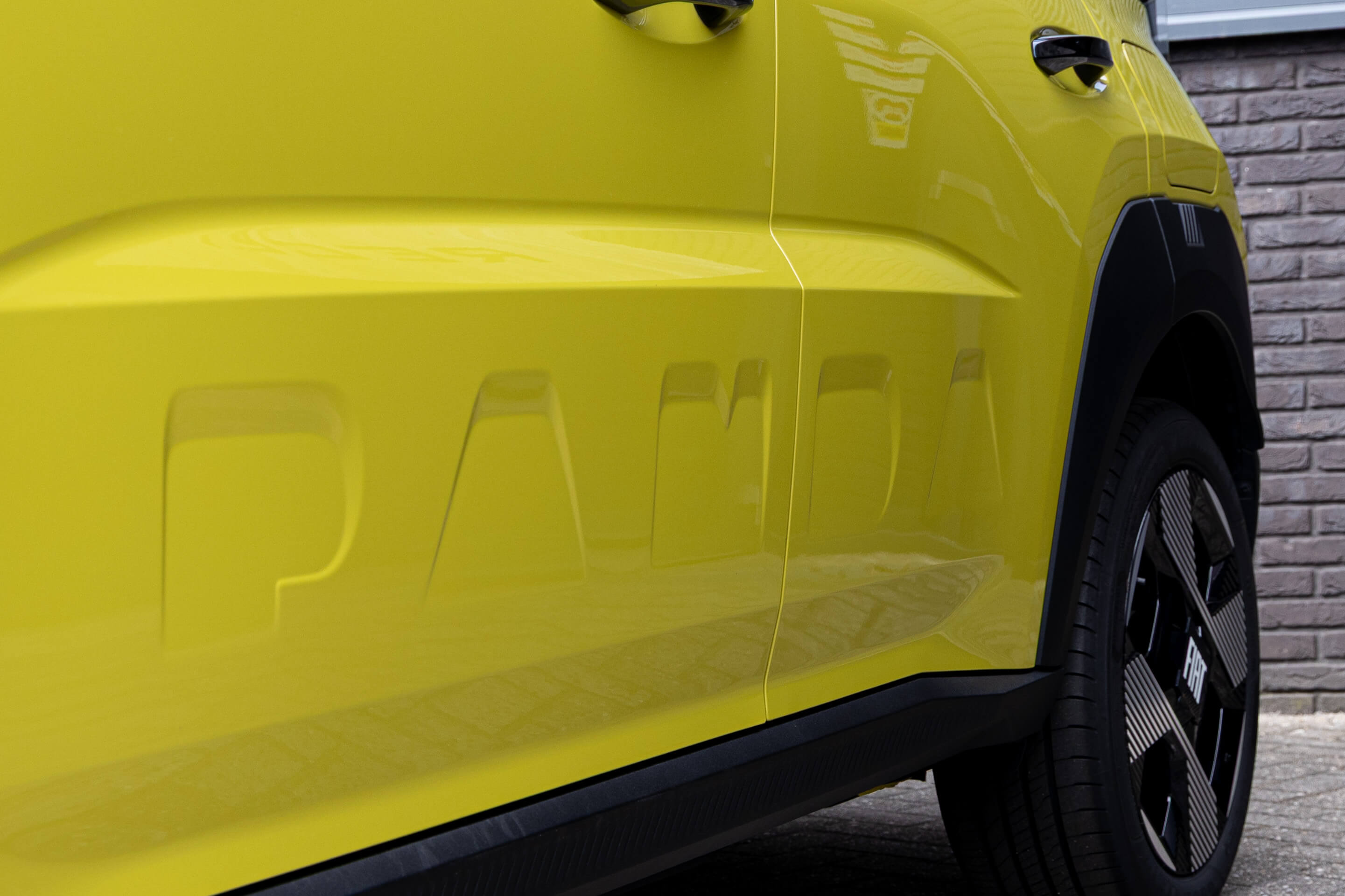 Het ontwerp is direct herkenbaar. De pixellampen in de grille verwijzen subtiel naar de iconische Lingotto-fabriek in Turijn. Enkele plaatdelen zijn voorzien van gestanste teksten zoals 'Panda' en 'Fiat', een subtiel maar slim designelement. Op de C-stijl prijkt een slim 3D-logo dat afhankelijk van de kijkhoek het woord 'Fiat' toont of de strepen van het klassieke logo. Spelen met nostalgie, dat kan Fiat als geen ander.